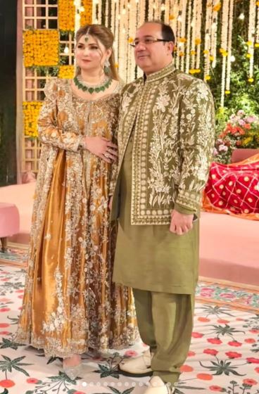 مایوں کے موقع پر ماہین خان نے سنہری رنگ کا دیدہ زیب لہنگا زیب تن کیا، جس میں وہ نہایت دلکش نظر آئیں۔ ان کے ہونے والے شوہر شایان بھی روایتی لباس میں ان کے ہمراہ موجود تھے، اور دونوں کے درمیان ہم آہنگی اور خوشگوار تعلق تقریب کے دوران نمایاں دکھائی دیا۔