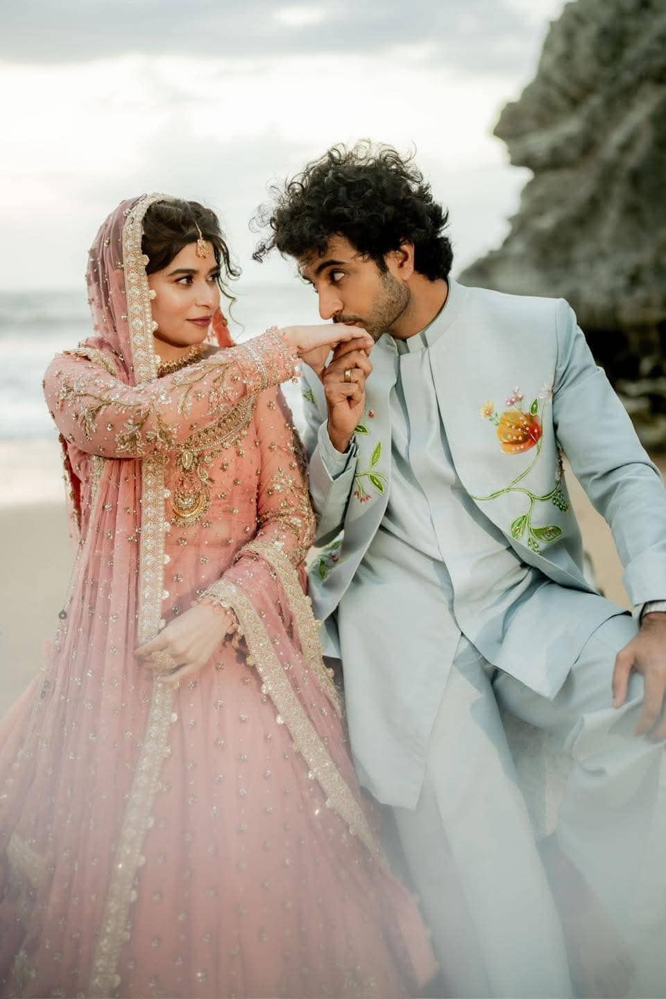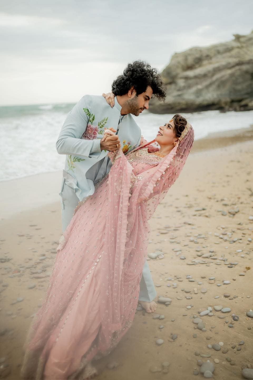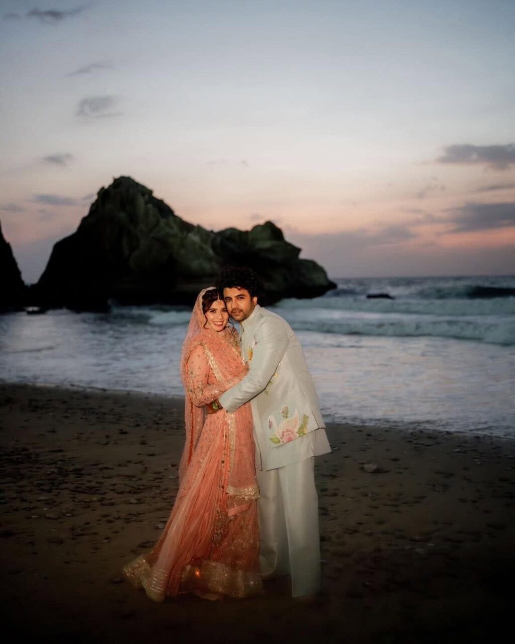 جوڑے نے اپنی شادی کے چند یادگار لمحات انسٹاگرام پر بھی شیئر کیے، جن میں ساحلِ سمندر کے قریب کیا گیا فوٹو شوٹ خاص توجہ کا مرکز بنا۔